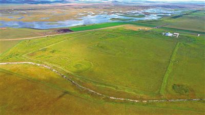 航拍鏡頭下的黑山頭古城遺址。黑山頭古城遺址位於呼倫貝爾市額爾古納市黑山頭鎮西北約10公裡的額爾古納河河谷平原上,始建於遼代,是內蒙古東部地區現存時代較早、保存完好、規模較大的重要城址之一,為第五批全國重點文物保護單位。記者 王智華攝