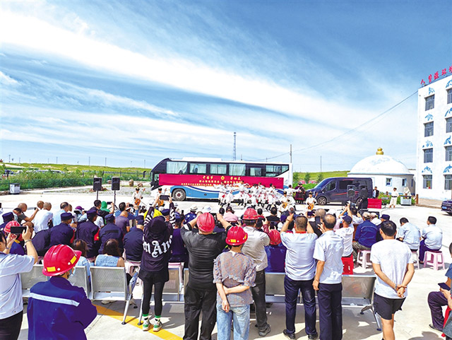 自治區總工會北疆職工烏蘭牧騎走進四子王旗,為一線礦業工人慰問演出。