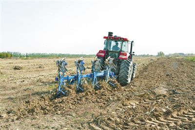 巴彥淖爾市臨河區城關鎮萬豐村正在深耕秋收后的土地。