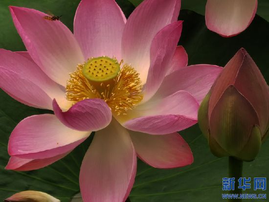 呼和浩特公园内盛开的荷花。新华网 徐梅摄